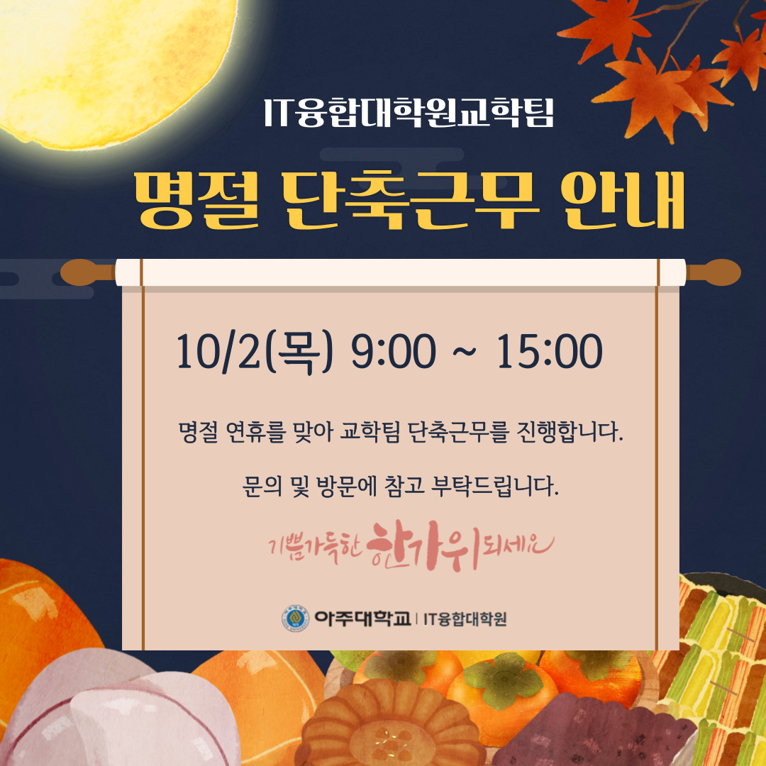 2025학년도 추석 연휴 교학팀 단축근무 안내