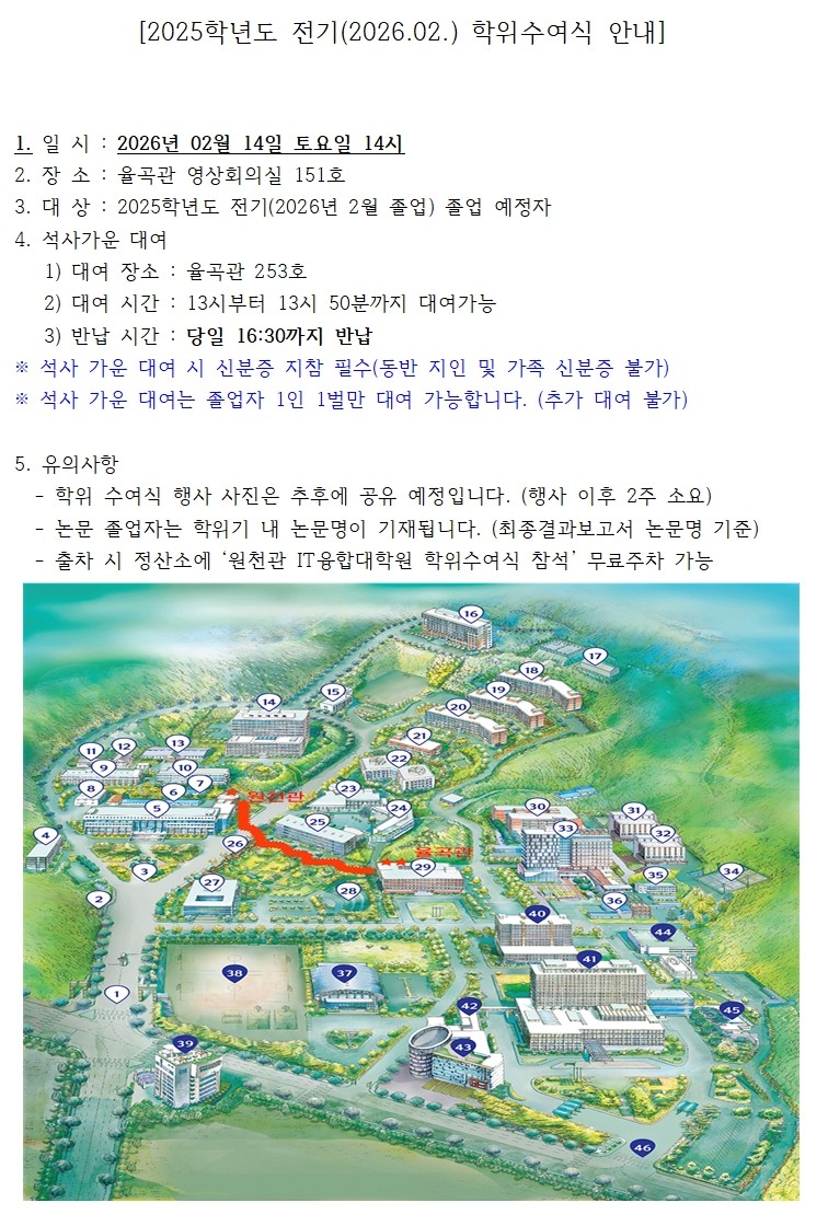2025학년도 전기(2026.02졸업) 학위수여식 안내